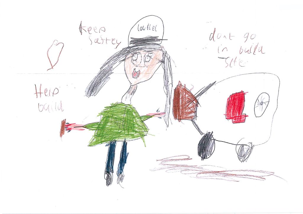All of the posters drawn by the children are currently being printed to be put on the site safety hoarding so everyone can admire the children’s hard work.