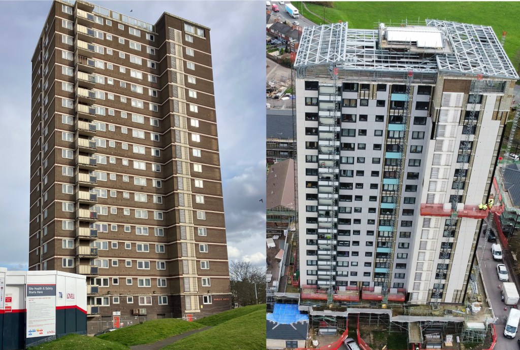 Darley House has undergone the construction of a new steel pitched roof. It also has new entrance doors, new windows and rain screen cladding. The cladding is giving thermal efficiency to the building to offer warmer homes and great building aesthetics. The enclosed balconies offer extra usable warm space for residents. The difference is amazing to see, giving the building a completely new and modern look. The work to install the new heating systems into homes is ongoing. Once finished, it will provide a warm, economical solution. Residents have reported that the cladding, insulation, and window replacement works are already resulting in lower heating bills. This is great news for all residents.